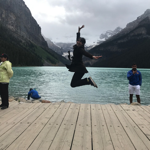Al segundo dia viajamos a Jasper, un pueblo más pequeño que Banff que quedaba a unas 4-5 horas de camino, así que aprovechamos el “roadtrip” para admirar el panorama. En ruta, nos detuvimos a ver un glaciar para estirar las piernas (no había muchos lugares donde detenerse). Lo que no sabíamos era que el centro era para diversas aventuras del glaciar. Entonces aprovechamos para ir al “Glacier Skywalk”, un puente de mas de 900 pies de altura completamente transparente. Estaba lista para seguir exponiéndome a situaciones donde se involucrara alturas, mi miedo no podía limitar el disfrute de mis vacaciones o mi VIDA. Al llegar al puente, sentí un poco de nervios, pero comencé a caminar hacia el. Confieso que tuve que sujetarme de mi madre para los primeros pasos y luego ¡comencé a brincar! Miré directo abajo, admiré la gran vista que permitía ese “camino del cielo”. El sentimiento de satisfacción de poder sonreír sentada en el puente, de estar tranquila porque sabía que había superado un eslabón más de mis miedos era maravilloso.