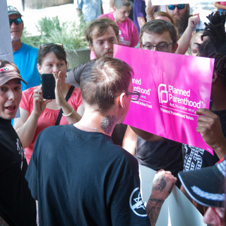 El evento, organizado por Planned Parenthood y apoyado por otras organizaciones, comenzó con unas 20 personas, la mayoría mujeres, que portaban pancartas con mensajes alusivos a los derechos reproductivos de las mujeres y en contra del nominado. Todo parecía marchar en orden y no había siquiera policías en el lugar. Entonces llegó la comparsa.